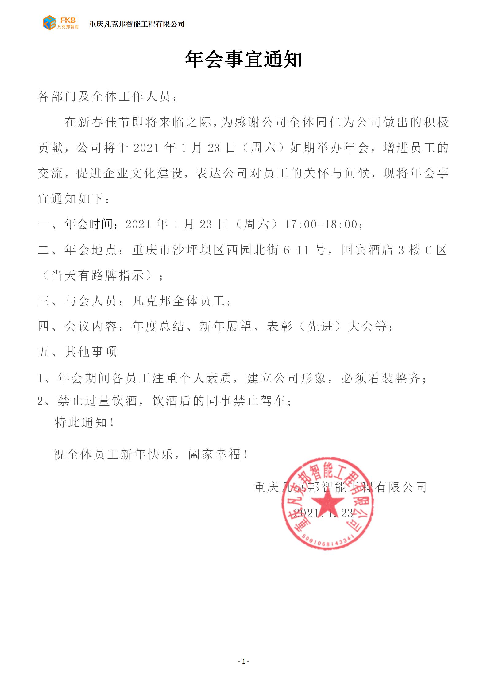 年会事宜通知